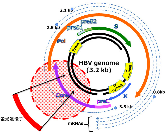 B型肝炎ウイルス(HBV)の生活環の中でこれまでにまだ理解されていない複製様式の詳細を明らかにし、それらの情報を基にしたHBVの持続感染を阻止する方法の開発、ポリメラーゼ阻害の範疇を超える新たな抗HBV作用を示す低分子化合物の開発に資する研究を行う事を目的にしている。具体的には (1) HBV感染が宿主の自然免疫機構を免れて増殖する機構の解析、 (2) HBVが標的細胞に侵入する機構の解析と、それを阻止する薬剤の開発、(3) HBV感染増殖を制御する宿主因子の解明と、それを基にした感染の持続化予測情報の入手、(4)感染細胞においてHBV cccDNAを維持する機構の解明と、それを阻止する薬剤の開発、(5) HBV感染を阻害する細胞表面蛋白質に対する中和抗体の開発等に焦点をあてた研究を行う。これらの研究は本研究グループがこれまで開発してきた、HBV感染を容易に識別し、かつ感染の定量化が可能なレポーターHBV系の改良、およびHBV cccDNA合成を評価可能にするレポーターHBVを開発しつつ推進する。