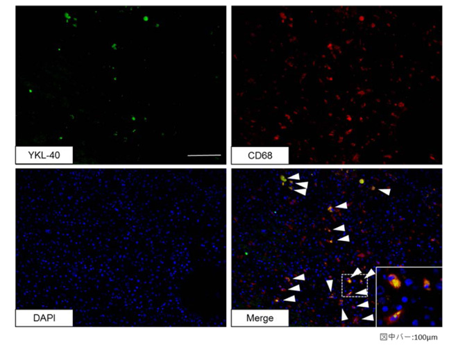 YKL-40*4は多様な炎症性疾患で血清中の値が上昇することが知られています。またC型・B型慢性肝炎では血清YKL-40の値が線維化の進行の指標となることが知られています。今回、血清YKL-40値がNAFLDの線維化診断マーカーとなるかということ、またYKL-40が肝臓内のどの細胞から分泌されているかを明らかにする目的で研究を行いました