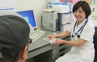 抗がん剤治療を受ける患者さんやご家族に、安心して治療が受けられるように、治療の副作用や予防について説明しています。また、患者さんの話を伺いながら患者さんの苦痛を出来るだけ取り除いて、患者さんらしく生活ができるように支援しています。